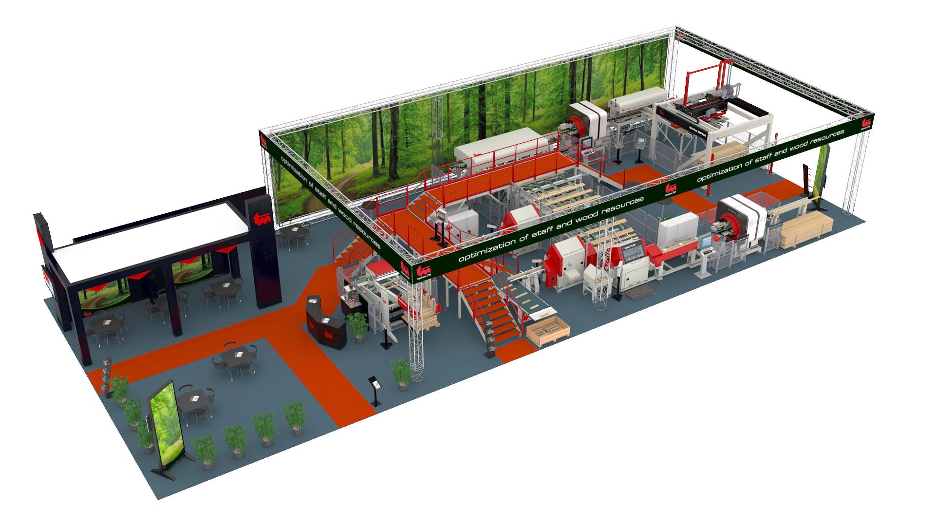 Hlavním exponátem společnosti System TM bude plně automatizovaná linka se dvěma optimalizačními zkracovacími pilami skládající se z následujících položek: